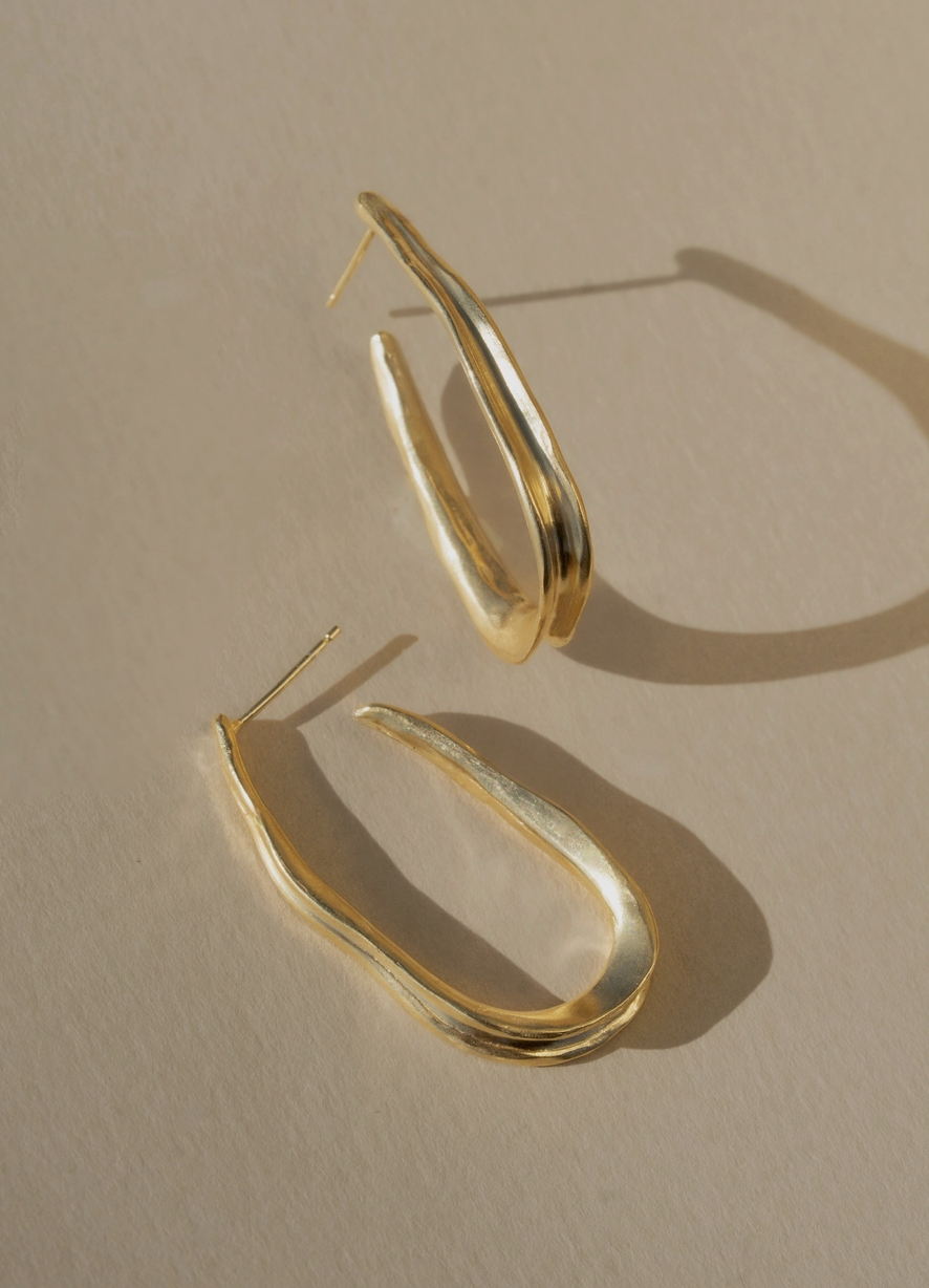 Inspired by natural terrain shaped over time, the Grotto Hoops feature elongated oval forms with a softly carved convex valley along the surface that plays with light, shadow, and movement.