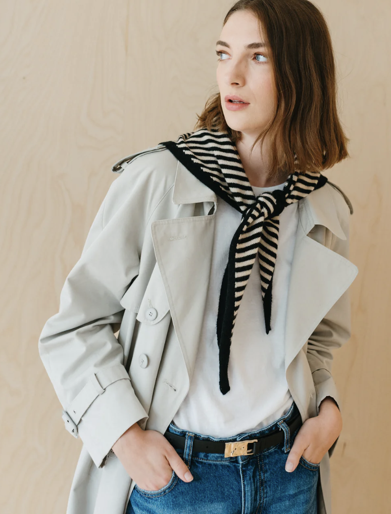 Triangles scarves have arrived! They are the perfect finishing touch as the weather cools. Easily add interest and elevate your outfit with this triangle scarf. It's knitted from soft and warm merino wool, and can be tied in multiple ways for endless styling options.