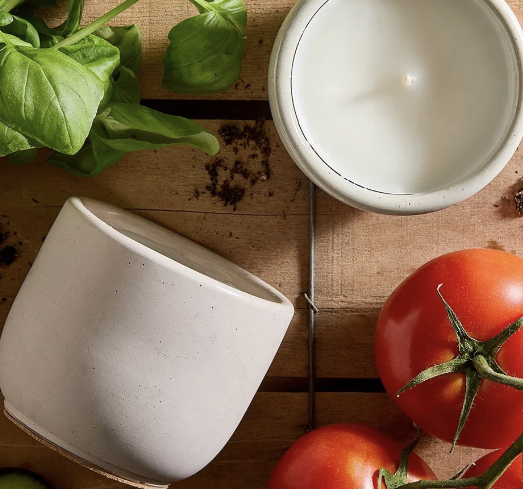 Garden captures the scent of stepping into a flourishing backyard at midday. Green tomato leaf leads with a crisp, earthy brightness, layered with aromatic basil and a squeeze of fresh lemon for a clean, herbal finish.
