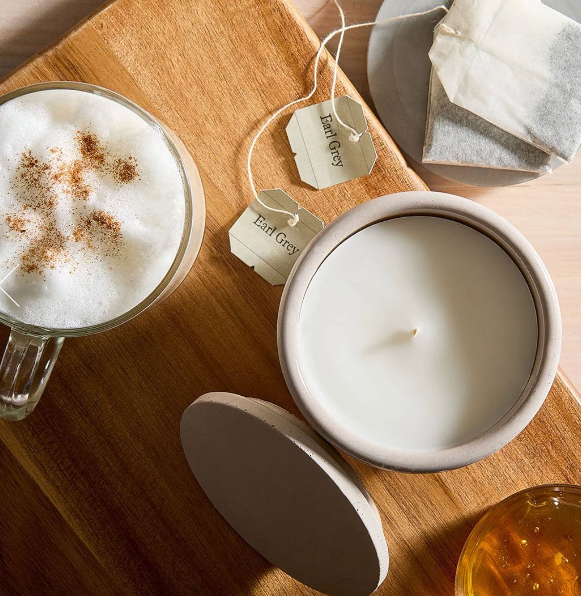 London Fog is a moment of warmth with intention. Bright bergamot opens the air with a gentle citrus lift, melting into soft cream and grounding amber for a scent that feels both fresh and comforting.